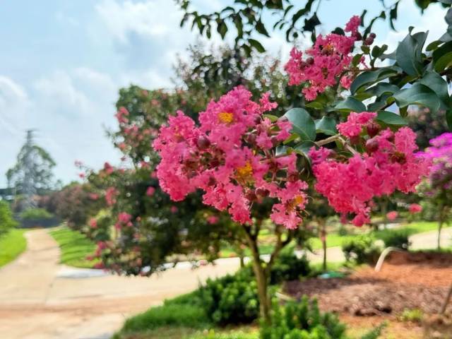 夏日炎炎,恰是紫薇花盛放的季节。在苍城镇乌金山紫薇园,紫薇花成团成簇繁稠密放。紫薇花的心情丰富,有紫色、玫红、大红、淡红、深粉和白色等。它的花瓣皱褶且浮薄,微风拂过,花朵轻轻摇曳,宛如清歌曼舞的仙子。笃定>>>