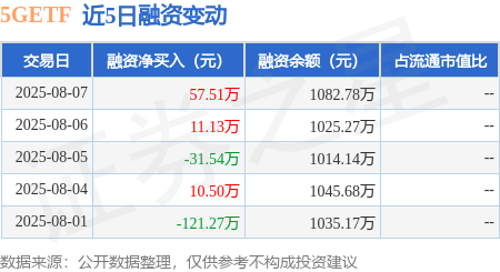 本站音问,8月7日开yun体育网,5GETF(159994)融资买入185.66万元,融资偿还128.14万元,融资净买入57.51万元,融资余额1082.78万元。